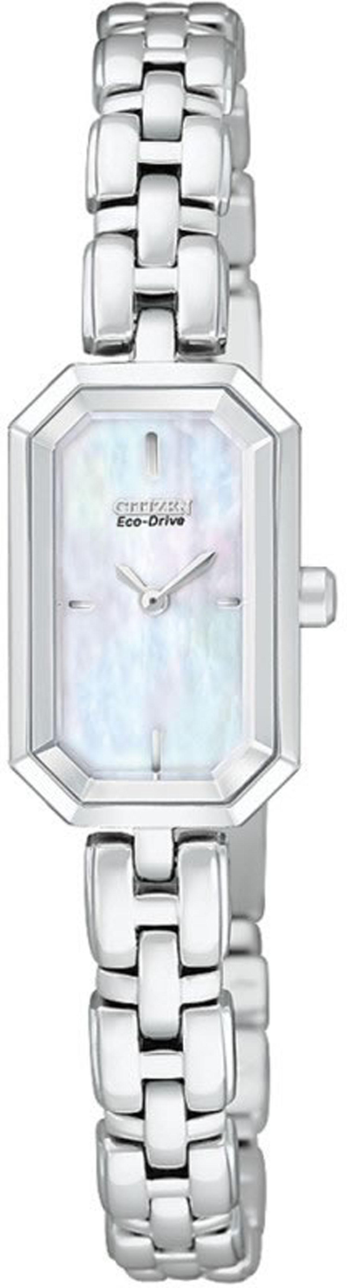 £160.00 Ladies Citizen stainless steel bracelet watch with a mother of pearl dial and mineral glass. Including splash proof water resistancy.Email Us about the "Ladies Citizen Watch EG2750-50D"