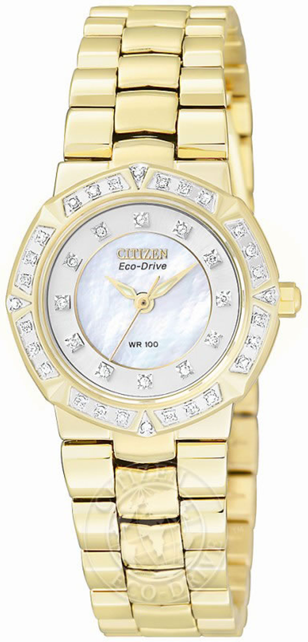 £288.00 Ladies Citizen gold plated bracelet watch with a mother of pearl dial and mineral glass. Including 100m water resistancy.Email Us about the "Ladies Citizen Watch EP5832-51D"